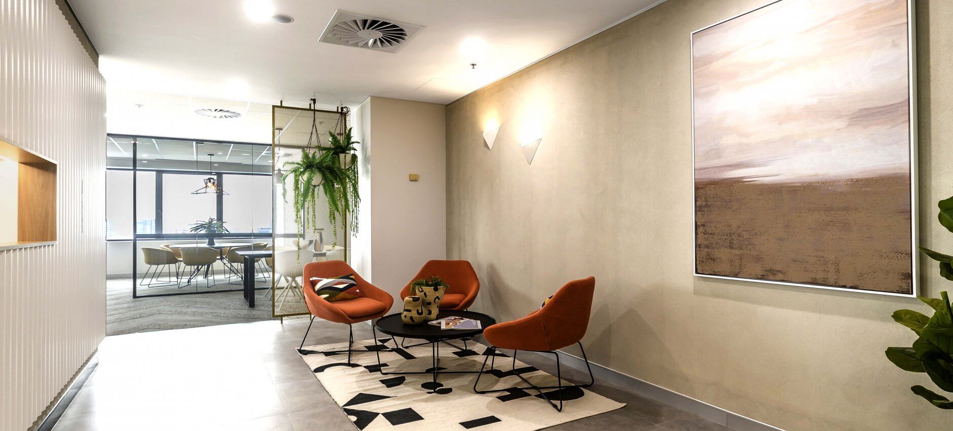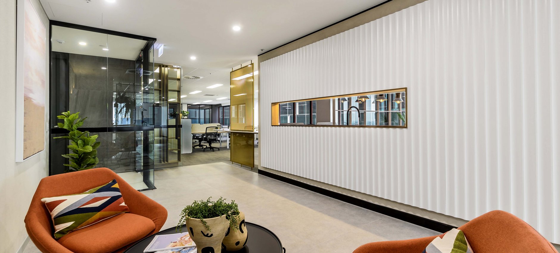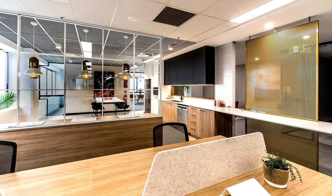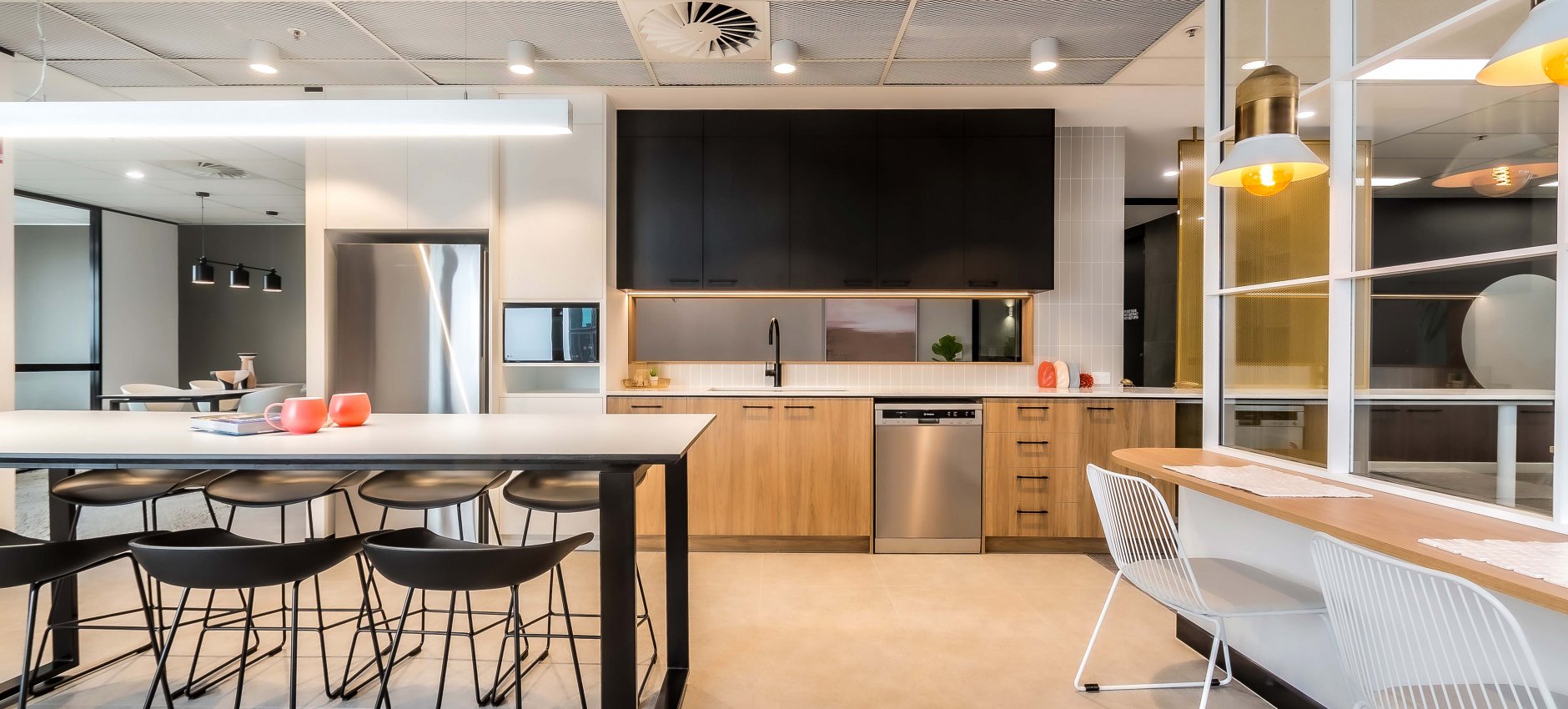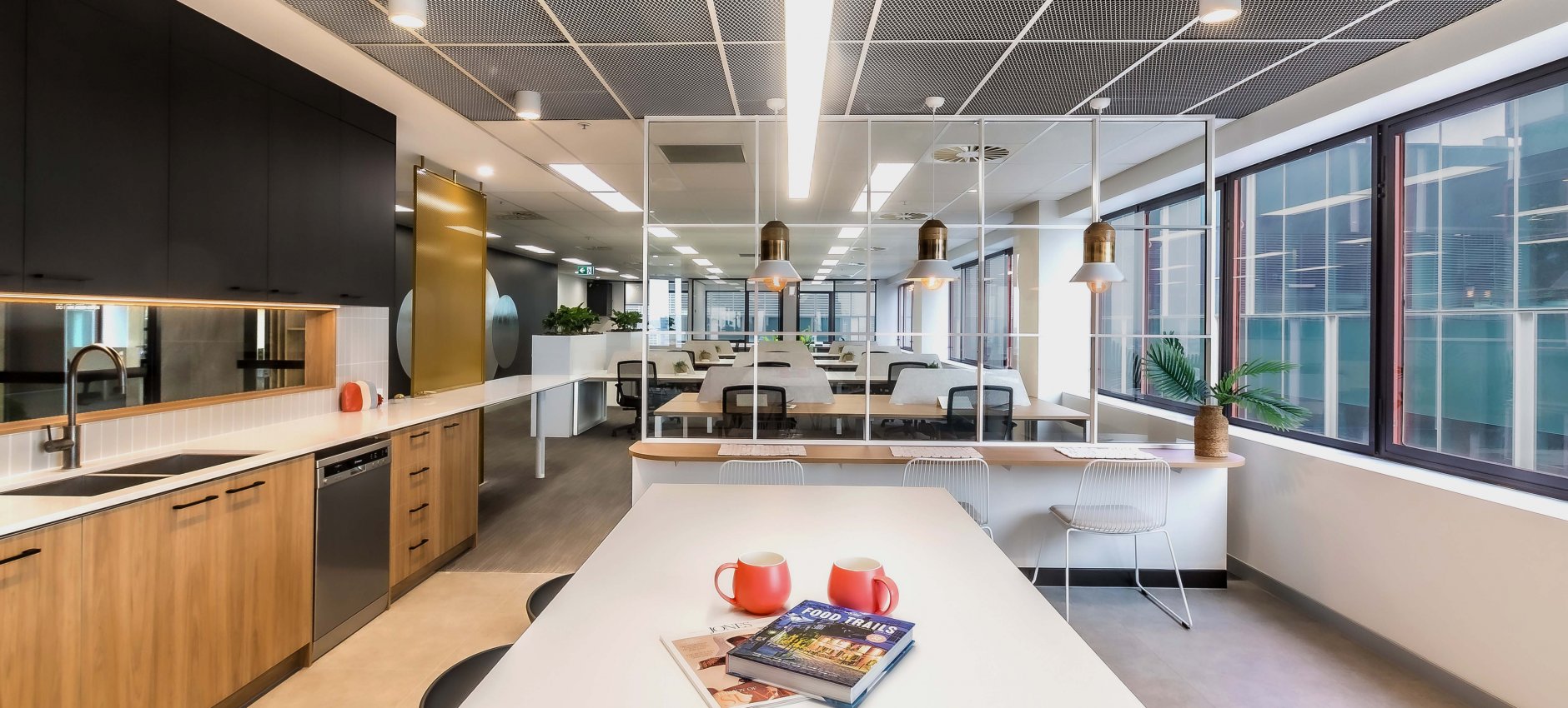 Partnering with our client and working together on ideas and design the floor space oozes style and flexibility to suit a variety of potential tenants. Amazing city views are showcased throughout the office space allowing light and a sense of space as you walk through. The design focuses on the kitchen being a central hub which allows for greater flexibility and breakout options for potential team members to collaborate. There are also thoughtful design aspects such as areas for team members to break out for time out on their own.