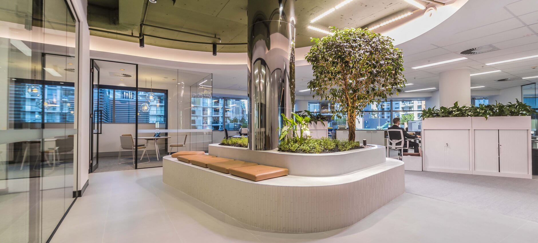 Engaged again by the building owners to do their own fitout and display suite. The brief was for a very architectural and paired back space that perspective tenants to the building could be shown through. The office and overall design is based around a central garden showpiece.